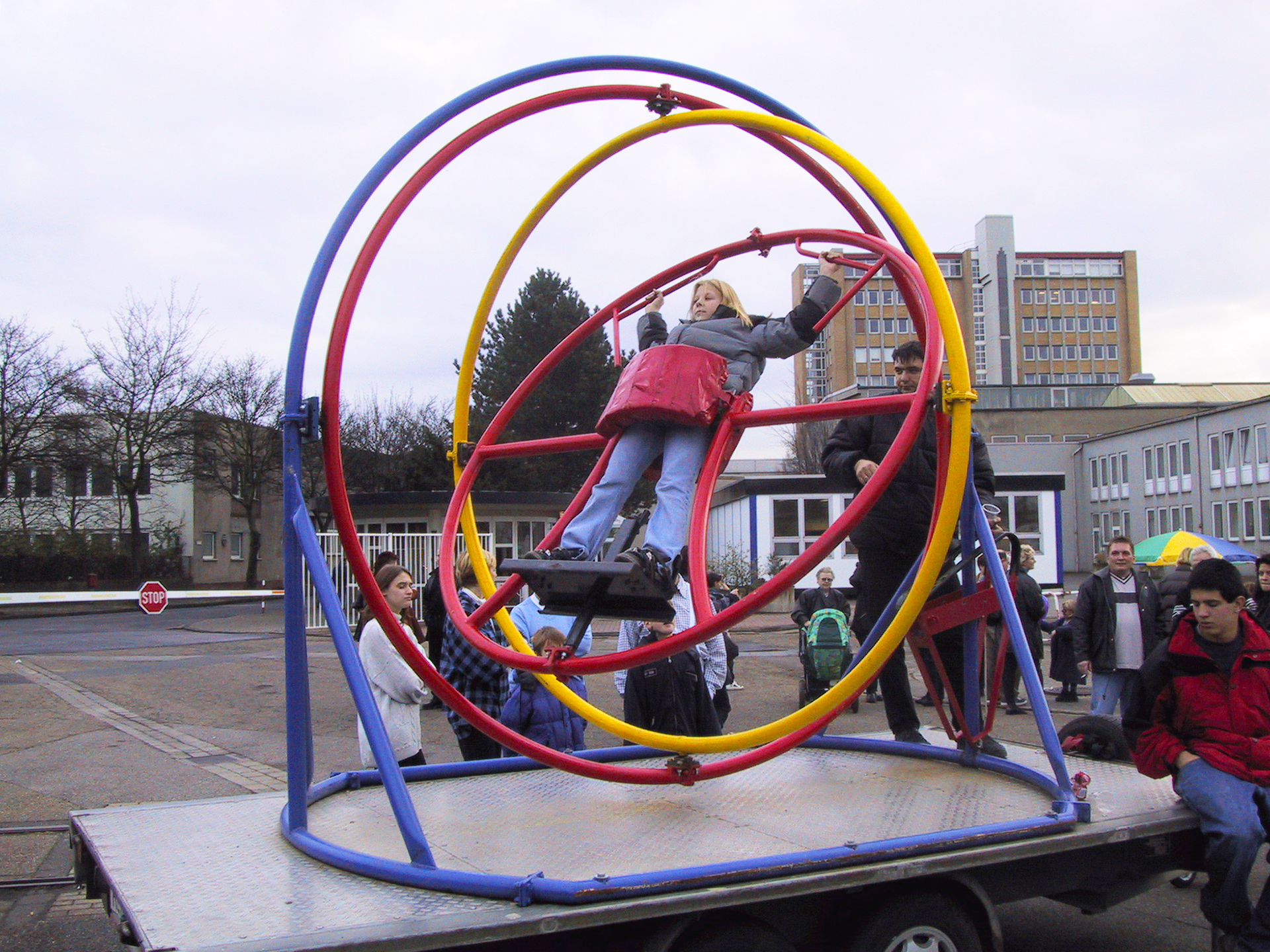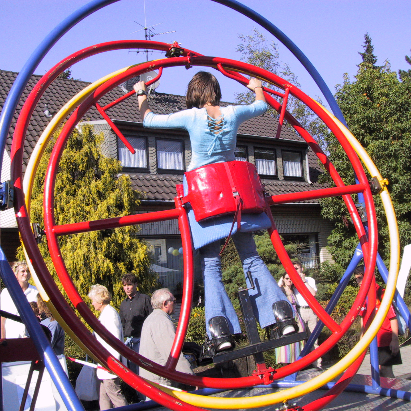 Völlig Schwerelos! Im Aerotrim befestigt, kann man sich durch die Verlagerung seines Körpergewichts in jede Richtung bewegen und sich fast schwerelos fühlen. Das Aerotrim ist fest auf einem Anhänger montiert.