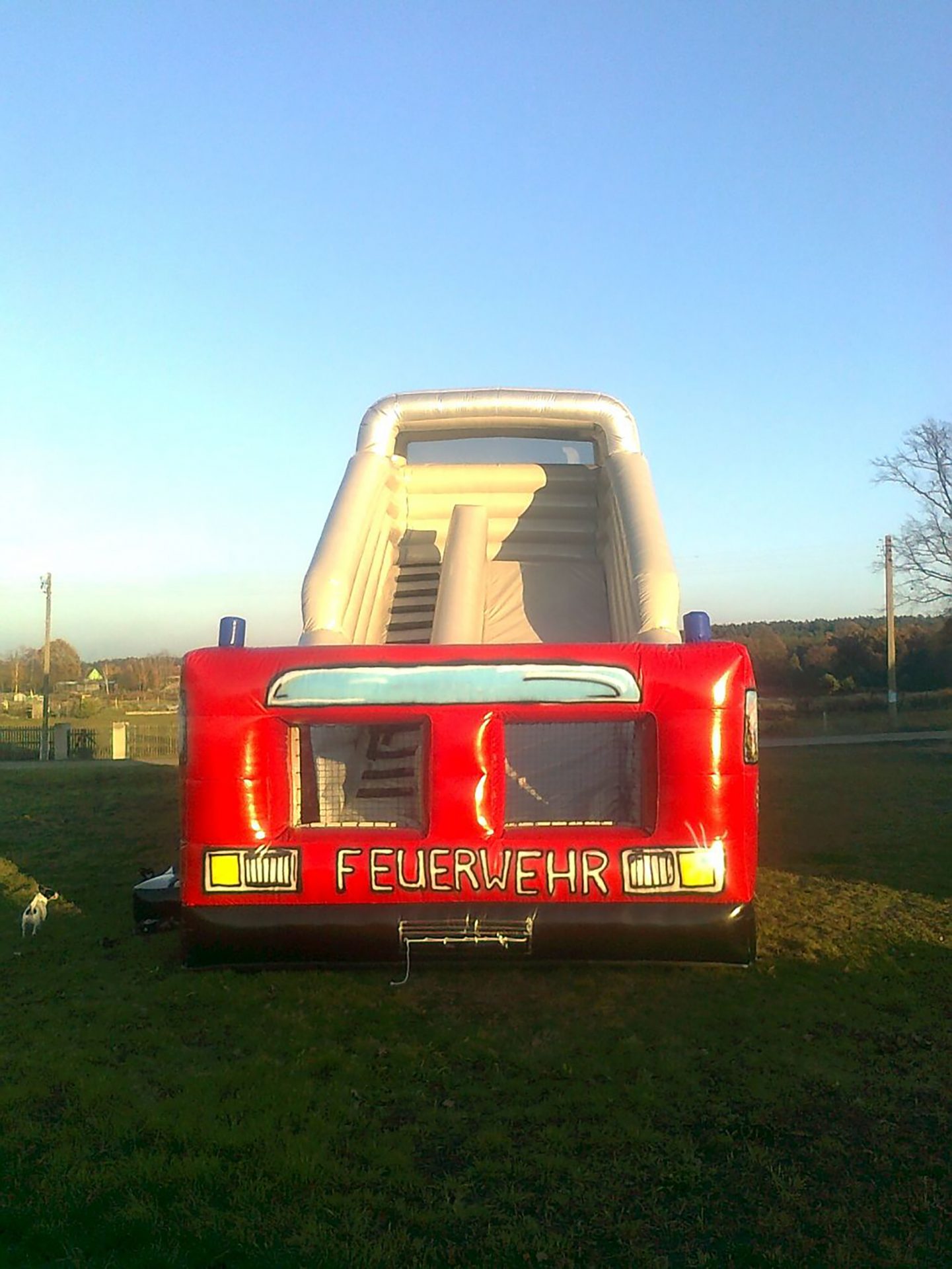 Für echte Feuerwehr-Fans! Große Rutsche, die ohne Wasser auskommt. Durch die Höhe von 7,5 m schon von Weitem gut sichtbar.