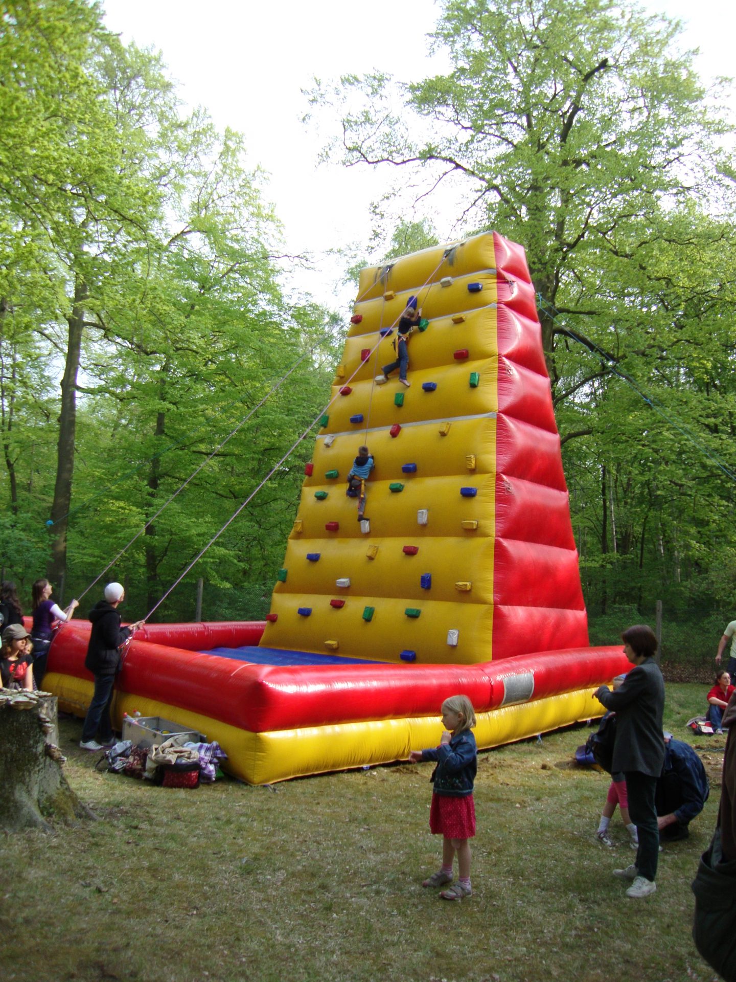 8 m hohe, aufblasbare Kletterwand, die von beiden Seiten bekletterbar ist.