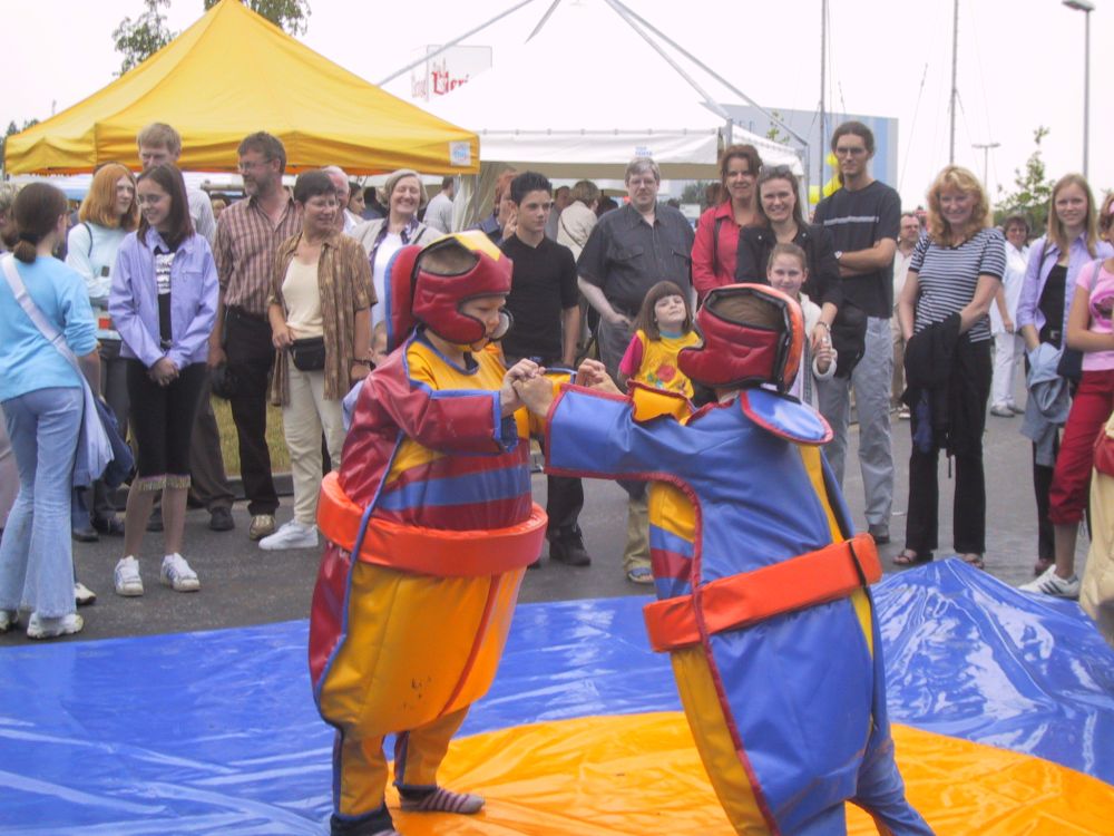 Schlüpfen Sie in den Sumo-Anzug und kämpfen Sie Ihren Kontrahenten von der Matte. Im Preis sind 2 x kleine und 2 x große Anzüge zur Miete enthalten.